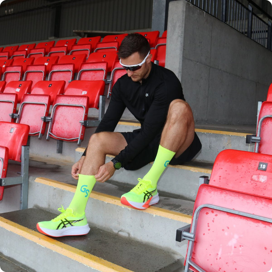 Våre løpesokker er laget for å inspirere deg på dager du ikke føler det. Neon farger, No Excuses på innsiden av sokken - da kan du rett og slett ikke droppe økten...