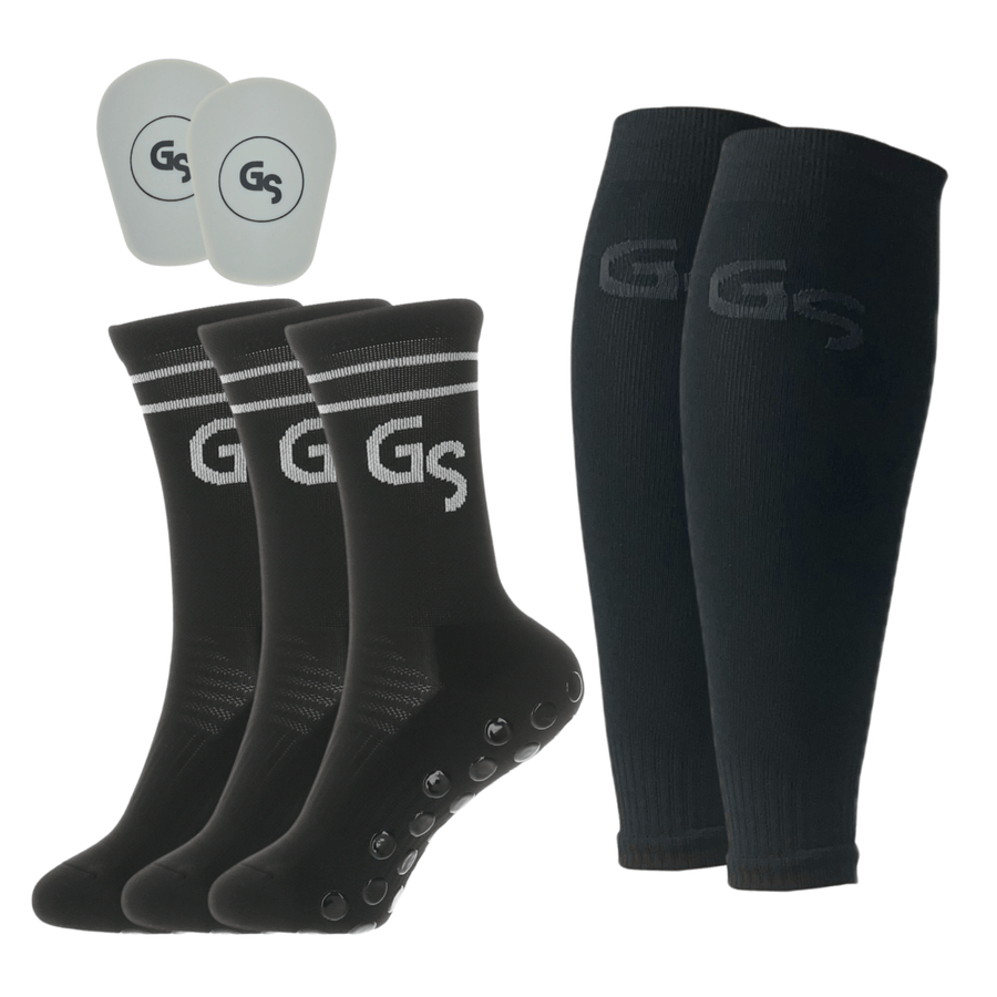 Pakken: Denne pakken inneholder 3par med 2.0 Standard svarte gripsokker, 2par med Svarte Sleeves og mini-leggskinn.